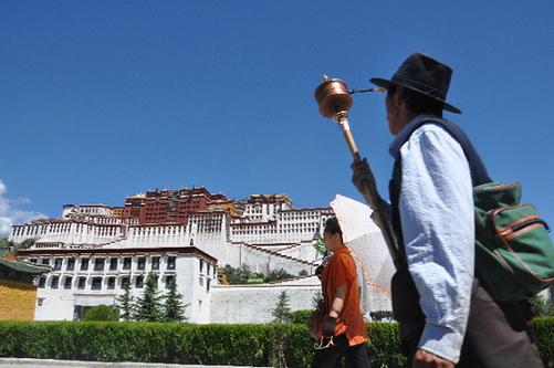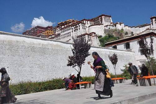 信教群眾在布達(dá)拉宮北面的轉(zhuǎn)經(jīng)道上轉(zhuǎn)經(jīng)