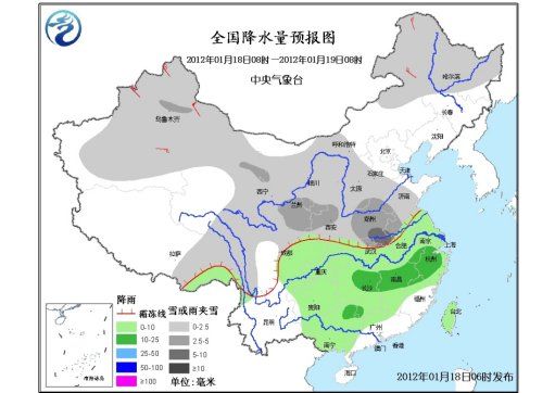 中東部將有大范圍雨雪天氣 18~22日,受一股中等強度冷空氣影響,我國中東部將出現(xiàn)一次較大范圍的雨雪天氣,并伴有4~8℃的降溫。新疆北部、西北地區(qū)東部、東北、華北、黃淮、江淮、江漢及江南北部等地將先后出現(xiàn)小到中雪或雨夾雪,其中西北地區(qū)東南部、華北西南部、黃淮西部、江淮西部、江漢、江南北部及貴州中北部等地的部分地區(qū)有中到大雪,局部有暴雪,貴州中西部的部分地區(qū)有凍雨;南方其余大部地區(qū)有小到中雨,長江中下游附近部分地區(qū)有大雨。 華北東部南部黃淮北部等地有霧 今天早晨到上午,遼寧中部、華北中東部和南部、黃淮北部和東部、江淮西南部、江漢、江南西北部和東南部、四川盆地中部、云南西南部等地有輕霧,其中,京津地區(qū)、山西南部、河北東部和南部、山東西北部、河南北部、陜西關中平原、福建中西部、云南西南部等地的部分地區(qū)有能見度低于1000米的霧。 未來三天具體預報 18日08時至19日08時,新疆大部、西北地區(qū)大部、內蒙古西部和東部、黑龍江大部、華北西部和中南部、黃淮大部、江淮西北部、江漢北部、西藏東北部、川西高原北部等地有小到中雪或雨夾雪,其中,黃淮西南部、江淮西北部局地有大雪;江淮中東部和西南部、江漢南部、江南、華南北部和西部、西南地區(qū)東部、西藏東南部、臺灣等地有小到中雨或陣雨;新疆北部、內蒙古東北部等地有4~6級風,新疆山口地區(qū)風力可達8級。 19日08時至20日08時,新疆西南部、西北地區(qū)中東部、內蒙古大部、東北地區(qū)中西部、華北、黃淮大部、江漢北部、西藏東北部、川西高原北部等地有小到中雪或雨夾雪,其中,西北地區(qū)東南部、黃淮西部局地有大雪;江淮、江漢南部、江南、華南北部和中西部、西南地區(qū)東部、西藏東南部、臺灣等地有小到中雨或陣雨;新疆北部、內蒙古東北部有4~6級風;渤海、渤海海峽將有6~9級的東北風。 20日08時至21日08時,新疆西南部、西北地區(qū)中東部、內蒙古東北部和西部偏南地區(qū)、華北、黃淮大部、江淮大部、江漢北部、江南西北部、西藏東北部、川西高原北部等地有小到中雪或雨夾雪,其中,華北西部、江淮中西部、江漢北部、江南西北部的部分地區(qū)有大雪,江南西北部局地有暴雪;江南中東部和西南部、華南、西南地區(qū)東部、西藏東南部、臺灣等地有小雨或陣雨,浙江西部局地有大雨,貴州中西部的部分地區(qū)有凍雨;新疆北部、內蒙古東部有4~6級風;渤海、黃海將有7~8級、陣風9~10級的東北風,東海北部海域將有6~8級的風。 |