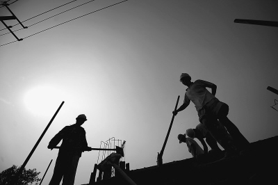 7月5日,山東濟(jì)南烈日當(dāng)空,在共青團(tuán)路附近一處建筑工地,農(nóng)民工依然堅(jiān)守崗位。