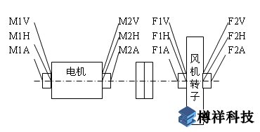 電機轉速為1485r/min(28.75hz),軸承為滑動軸承。采用加速度傳感器分別測量兩個軸承的軸承座外殼水平、垂直和軸向方向的振動量。測點位置如圖1所示。