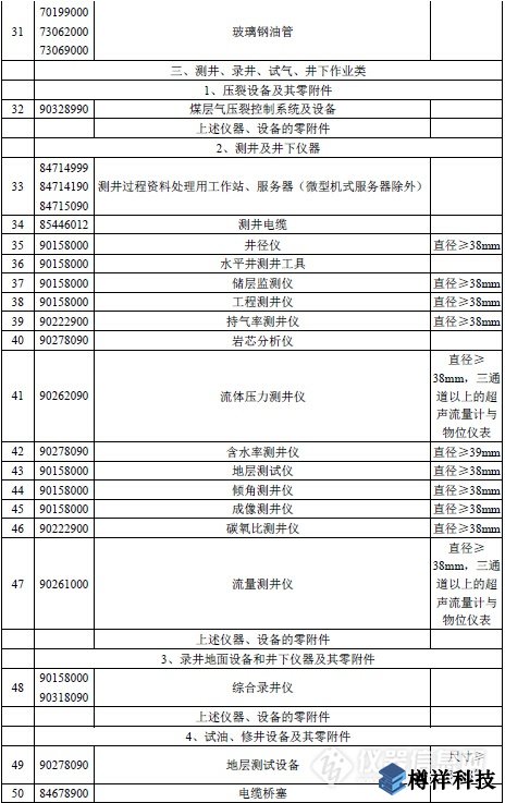 據(jù)儀器信息網(wǎng)編輯統(tǒng)計(jì),《勘探開發(fā)煤層氣免稅進(jìn)口物資清單》中,物資貨品分為開發(fā)作業(yè)類、鉆井類、煤層氣儲(chǔ)運(yùn)類等八大類,包含掃描電鏡、應(yīng)力測試儀、巖芯分析儀、含水率測井儀、成像測井儀等儀器設(shè)備及其他裝置共計(jì)89種。