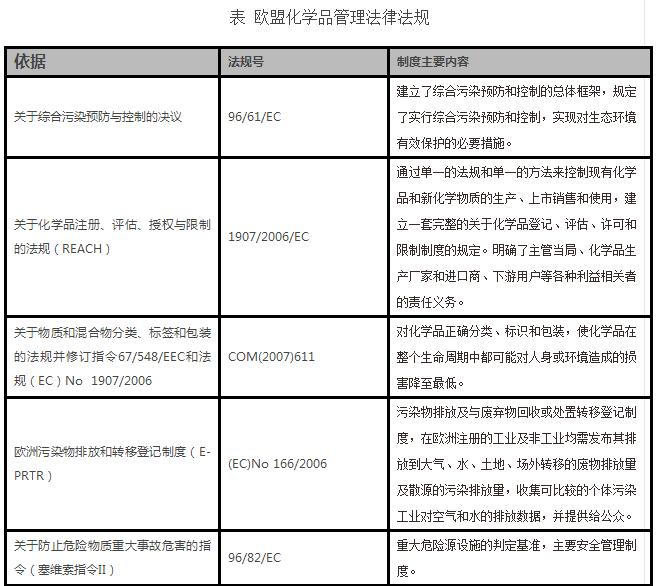 總體來說,歐洲議會、歐盟理事會和歐盟委員會等行政組織是歐盟化學品環(huán)境安全的立法、監(jiān)督和決策機構,它們對歐盟化學品環(huán)境安全管理政策、法令和條例的制定和決策起到非常重要的作用。