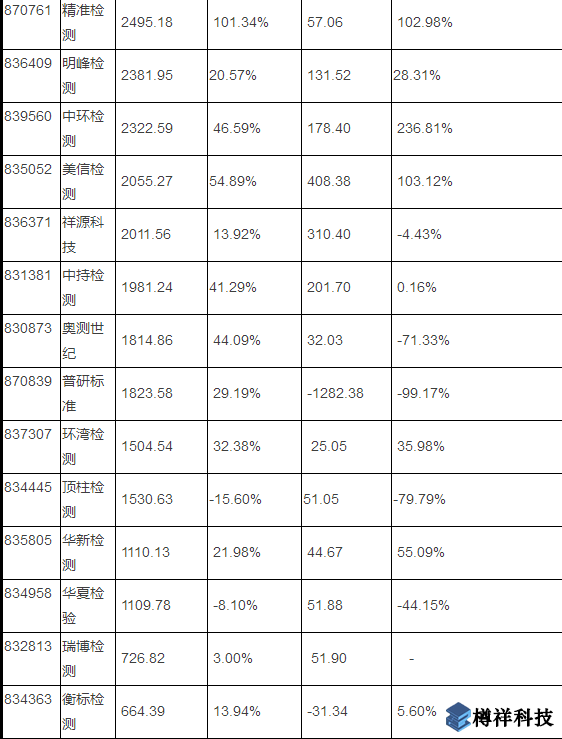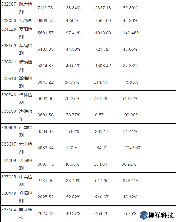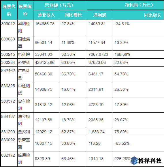 ***內上市檢測公司營業(yè)額、凈利潤一覽
