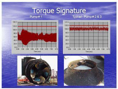 一個泵顯示扭矩波動的大變化,而正常運行的兩個泵具有較小的扭矩特征。經(jīng)過這次測試,一名潛水員被送入維修區(qū),發(fā)現(xiàn)一端鐘上的螺栓已經(jīng)生銹,導致導致水進入泵的凹槽脫落。這種情況導致泵在泵外循環(huán)水并產(chǎn)生氣穴現(xiàn)象。其他泵上的螺栓也需要更換,并且在不久的將來會失敗。維修所需的停機時間使設施損失數(shù)百萬美元,但維修后提***的生產(chǎn)率很容易彌補這些成本。